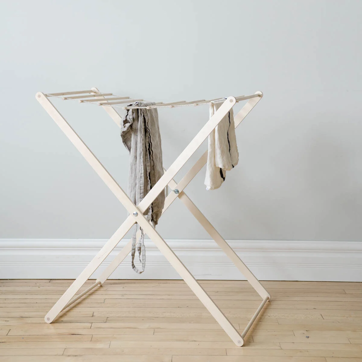 I have a real love affair with Swedish design and their ability to make everyday, functional items seem so balanced. Drying your clothes outside in the sun is an ideal alternative to dryer machines, but some rainy days keep that idea from coming to fruition. Enter this drying rack that is crafted with care in Sweden from birch + rope and perfect for hanging your clothing and textiles, all year long.